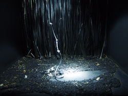 Projekt scenografii oparty na dramacie A. Mickiewicza "Dziady cz. II", w której możemy zetknąć się ze światem nadprzyrodzonych zjawisk, mar, zagubionych dusz. Scenogorafia ma sprawiać wrażenie "nie z tego świata", jest mieszanką wszechobecnego chłodu, srebra, czystości i śmierci.
